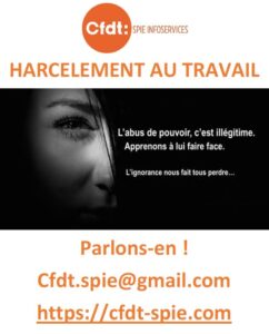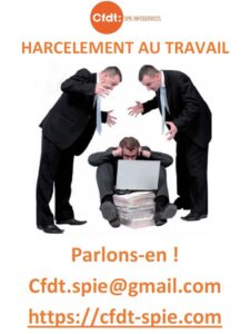 Afin de lutter contre le harcèlement moral nous commençons un campagne d’affichage dans toutes les agences afin de sensibiliser les salariés face à ce fléau.