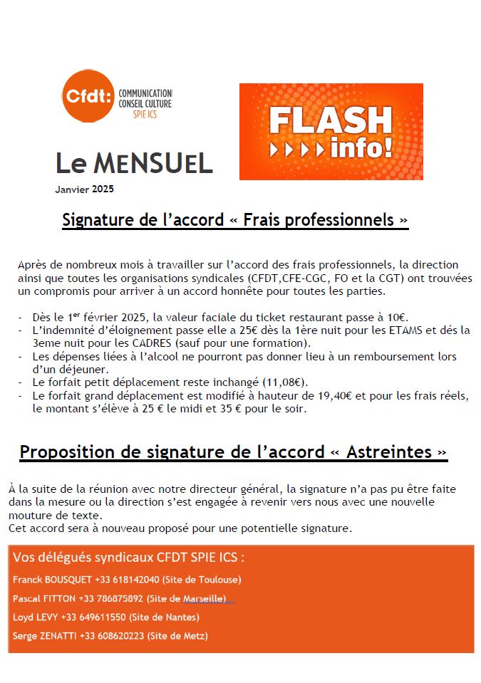 Communication sur la signature de l’accord relatif au frais professionnels le pdf est téléchargeable ici Share Post Share Email Categories: Accords d'Entreprise SPIE ICS